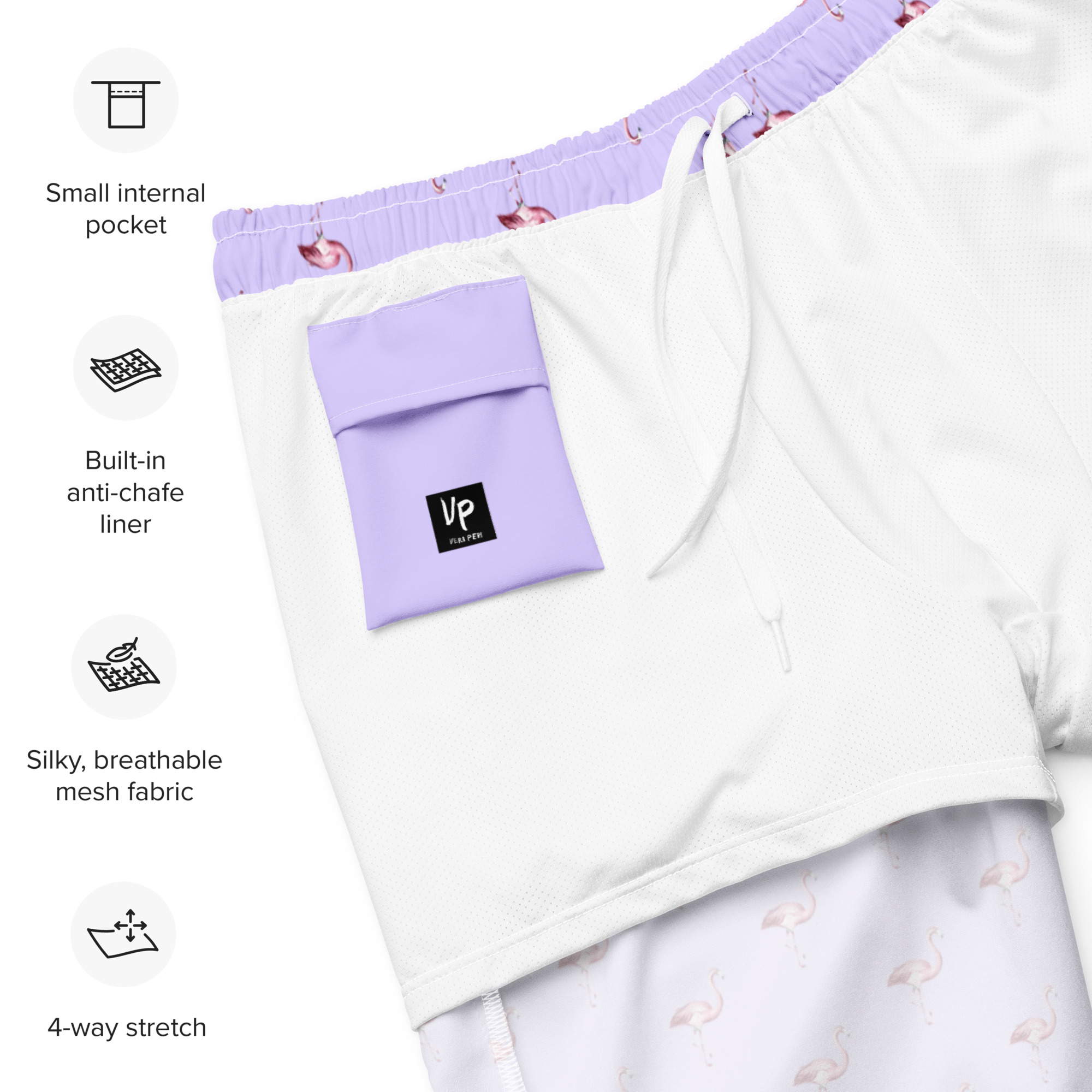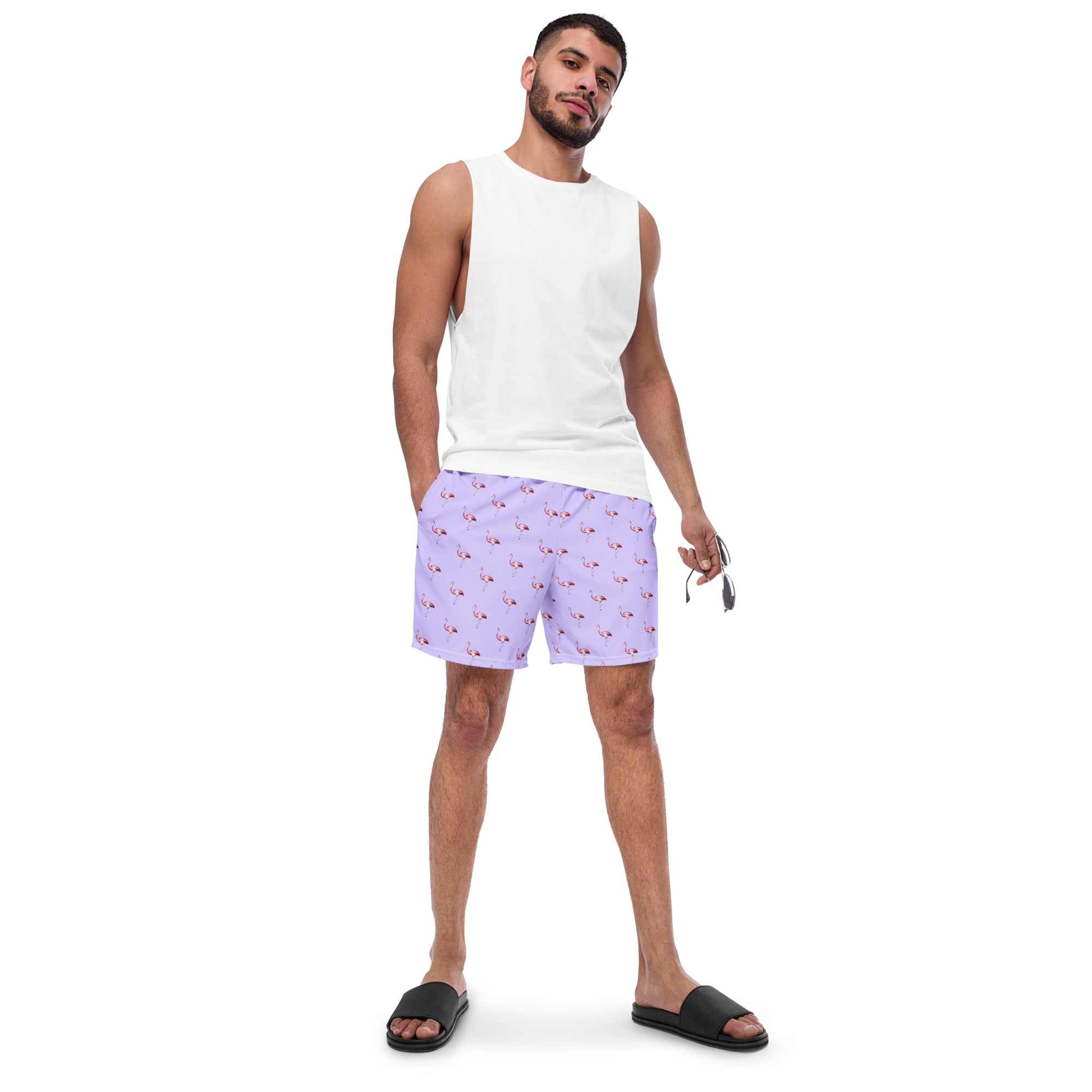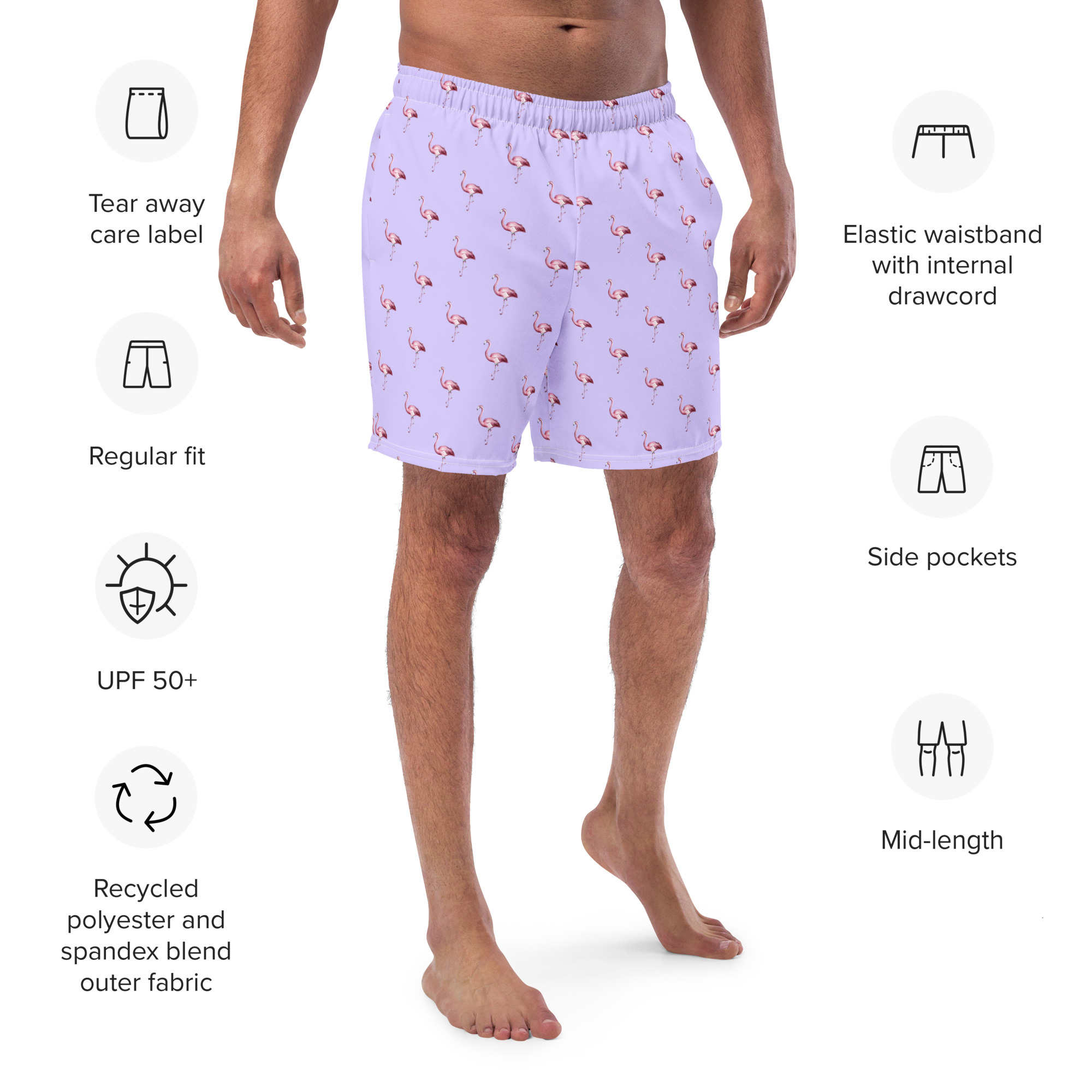 Men’s “Flamingo.lavender” Recycled Swim Trunks
