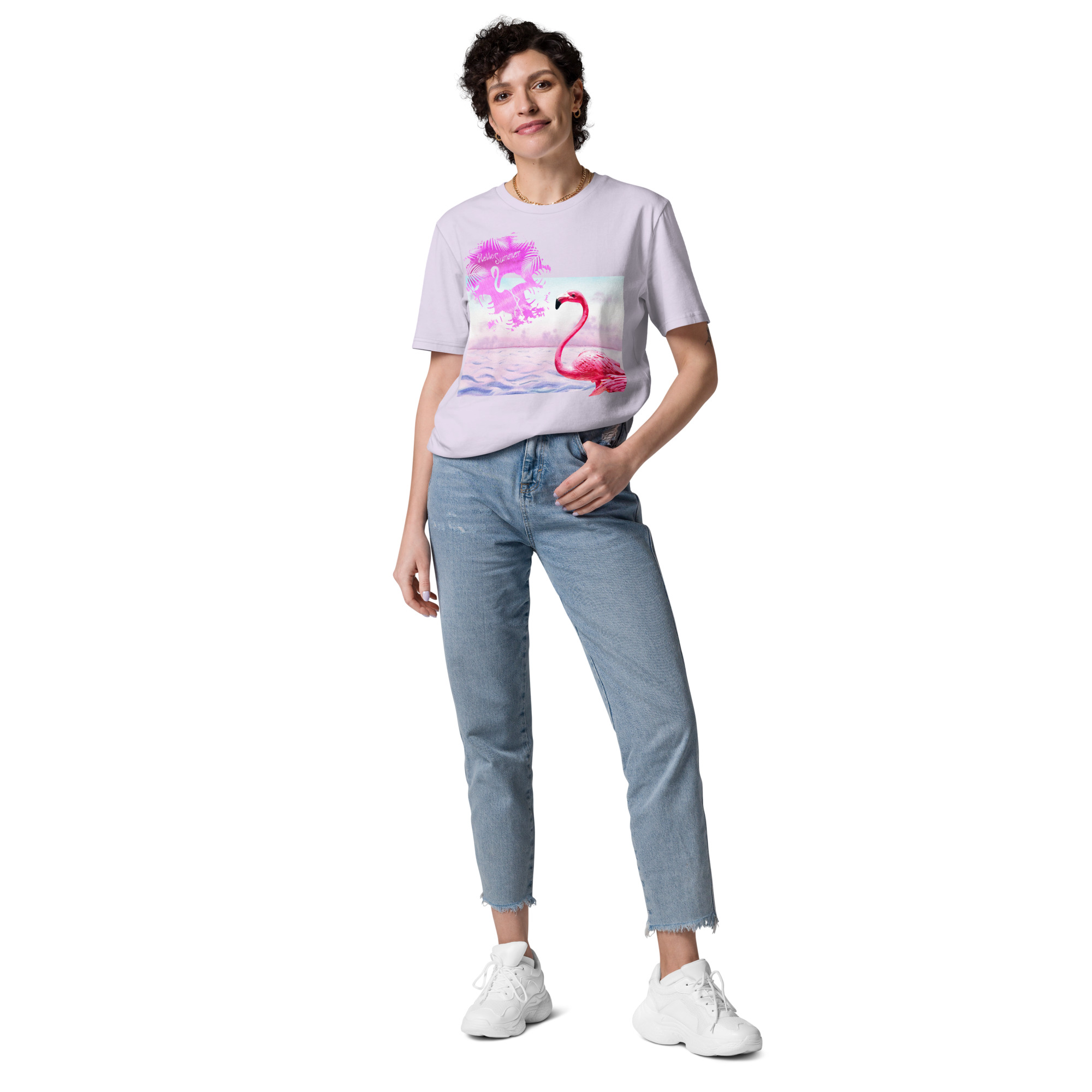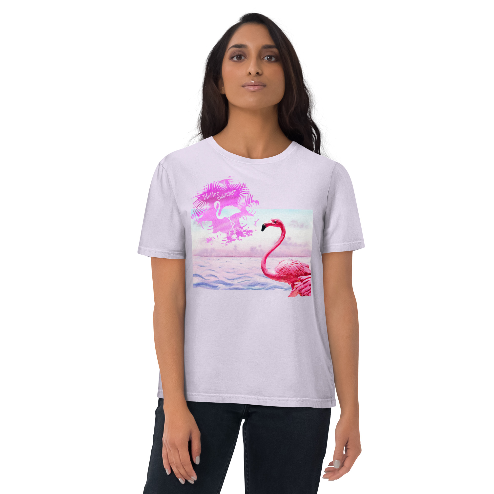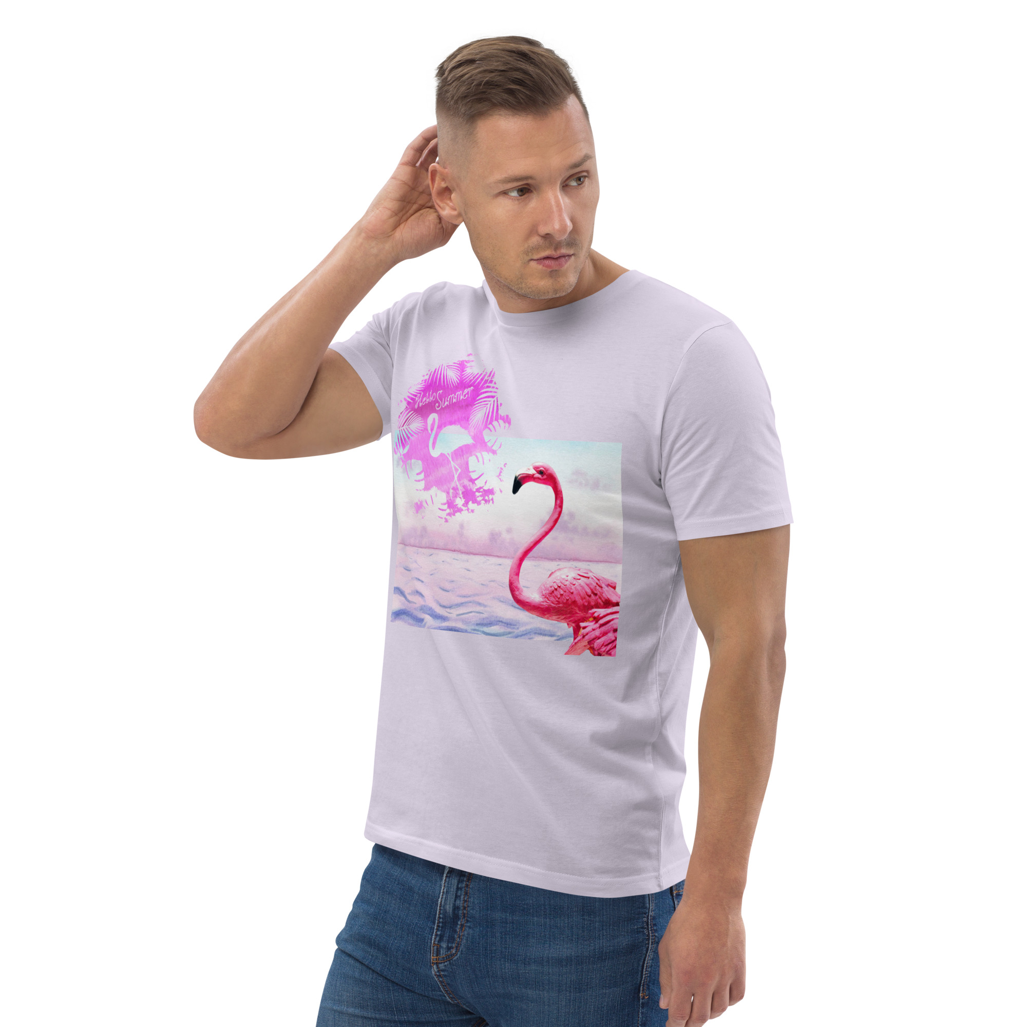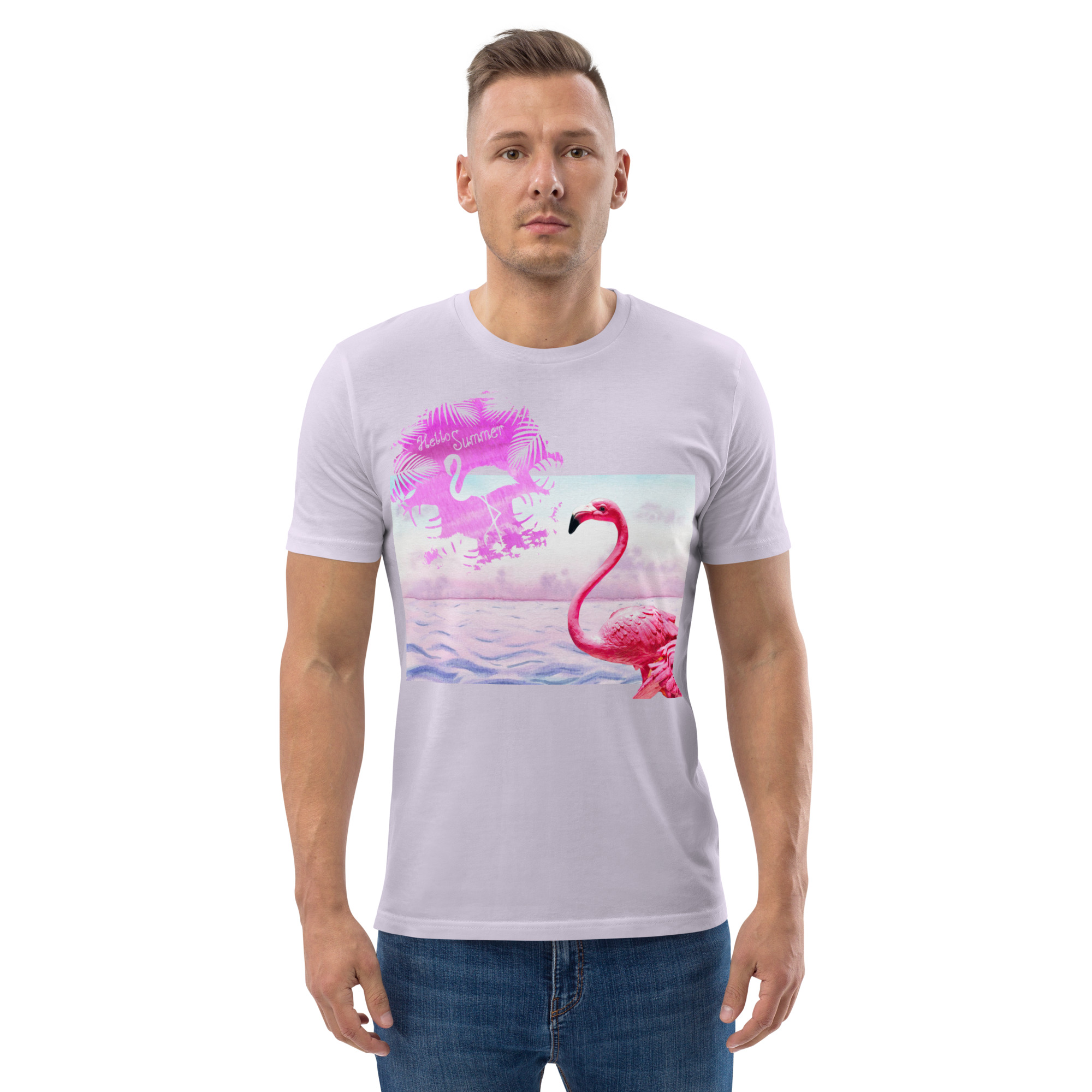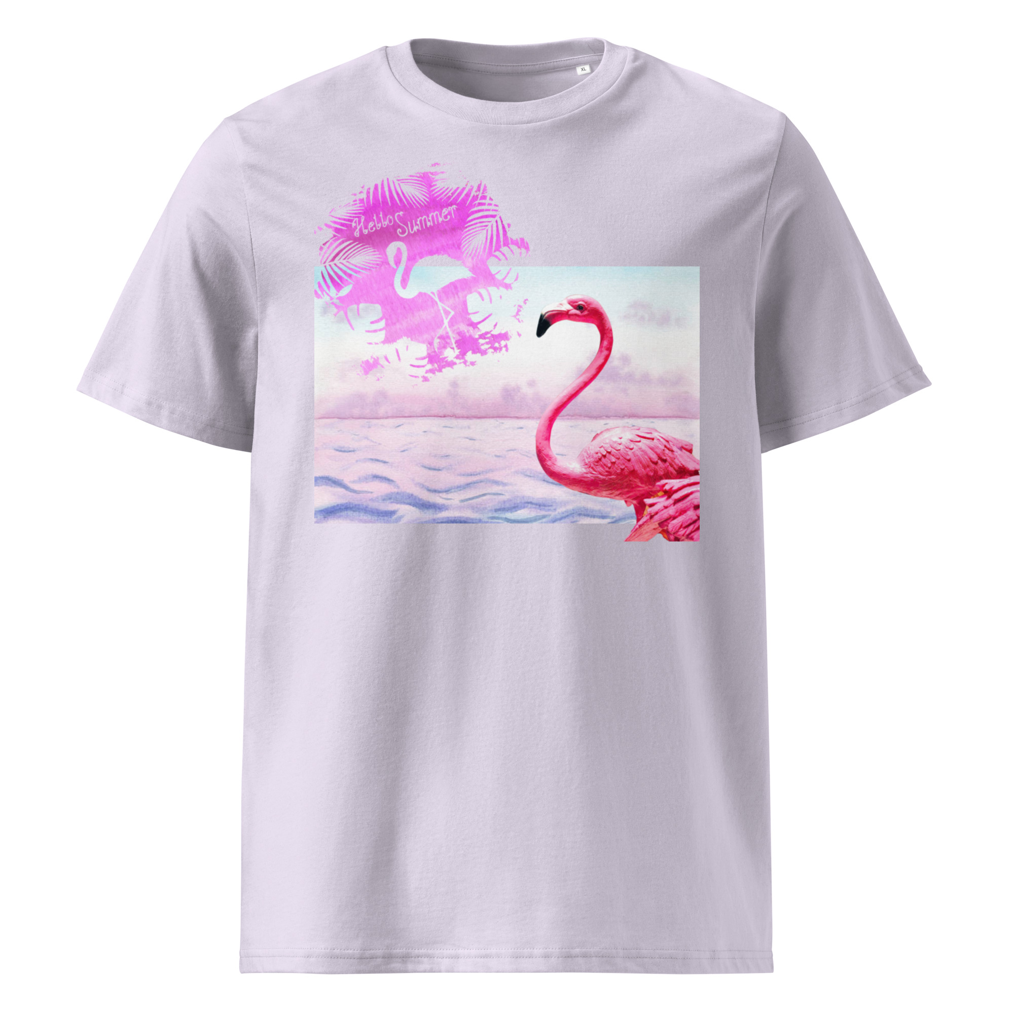 Unisex “Flamingo/hello summer.Lavender” organic cotton t-shirt