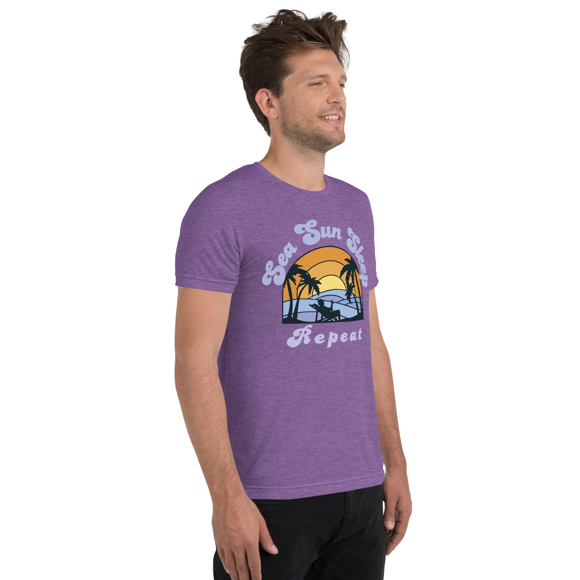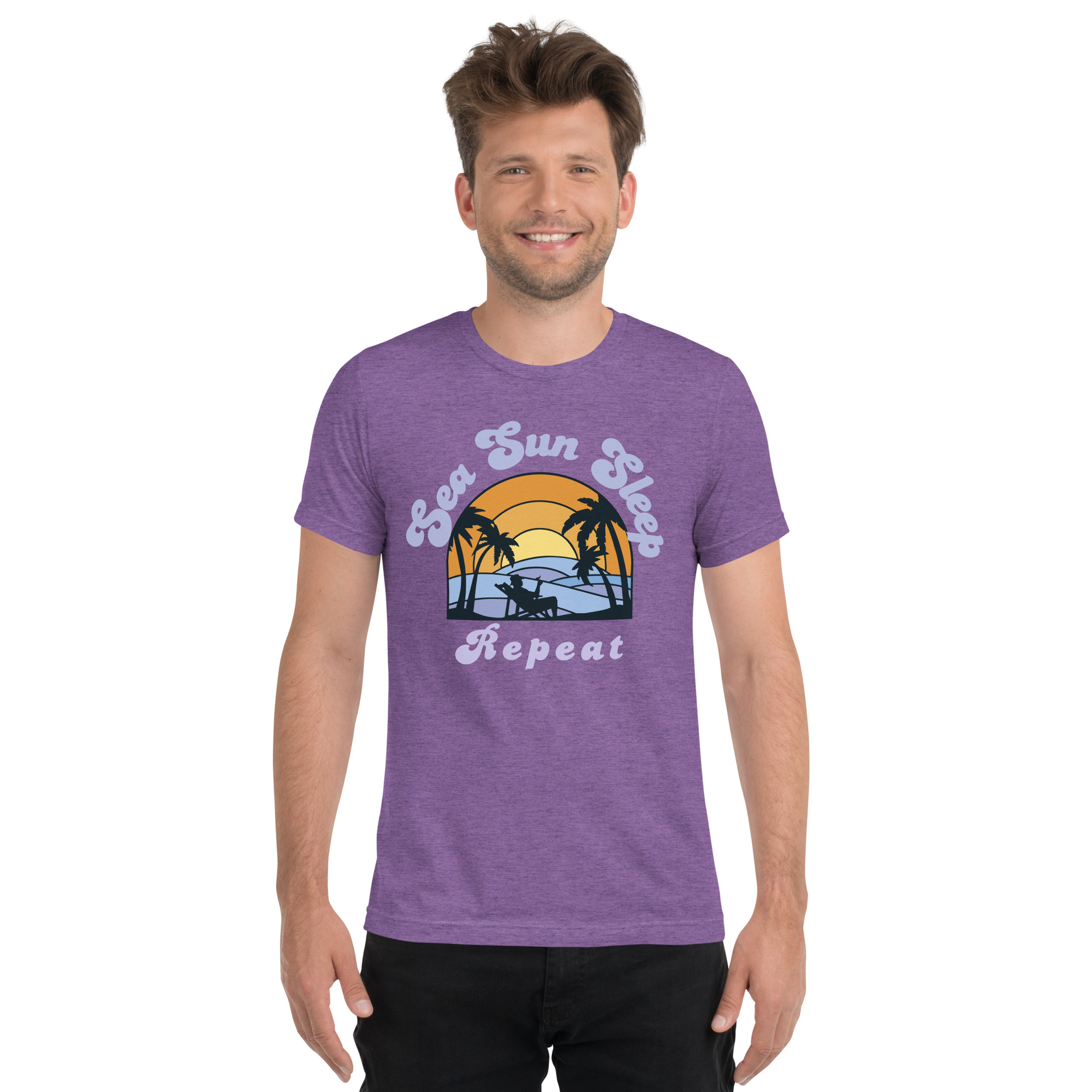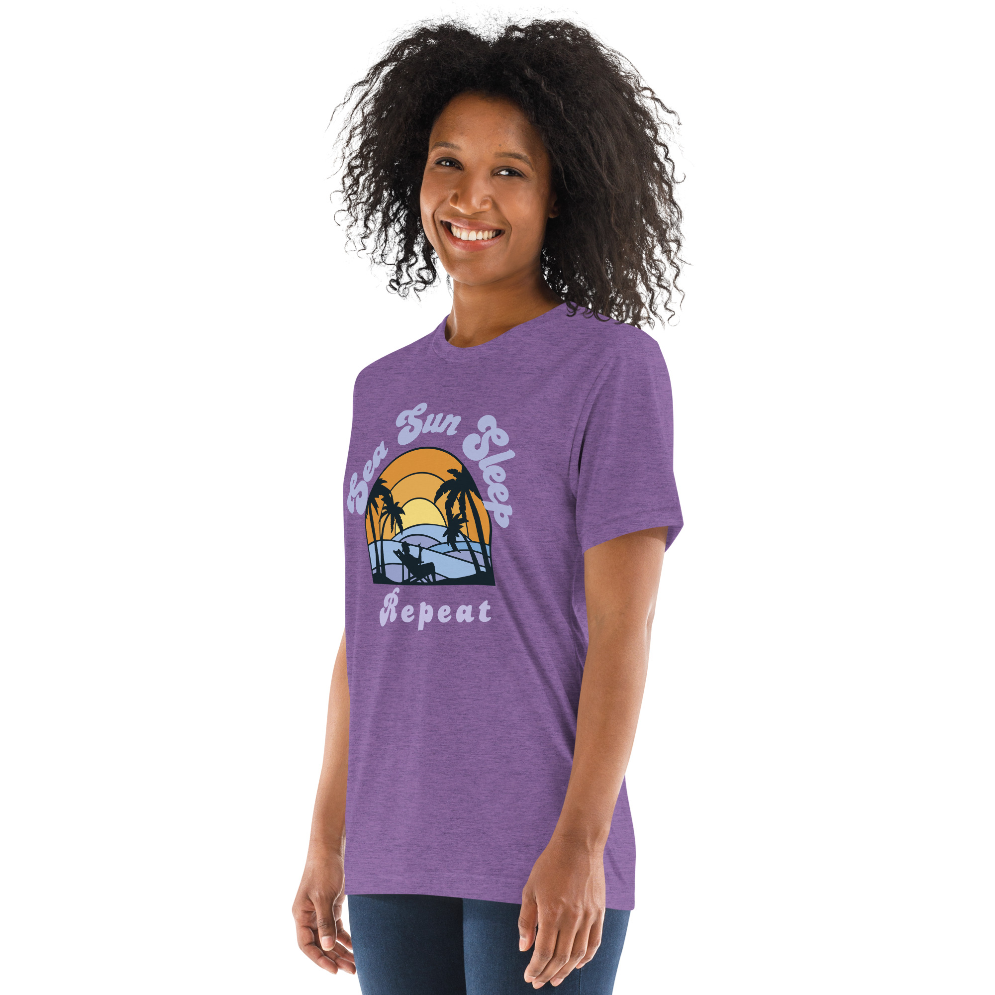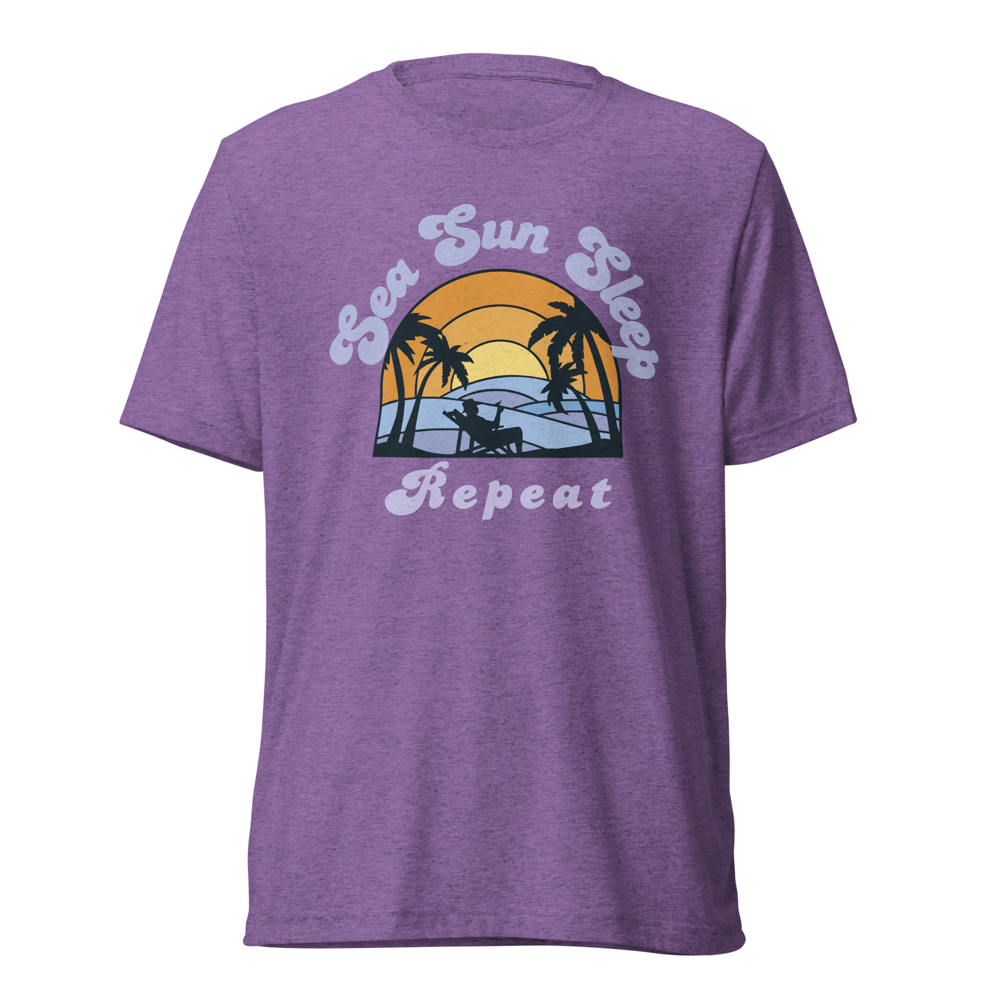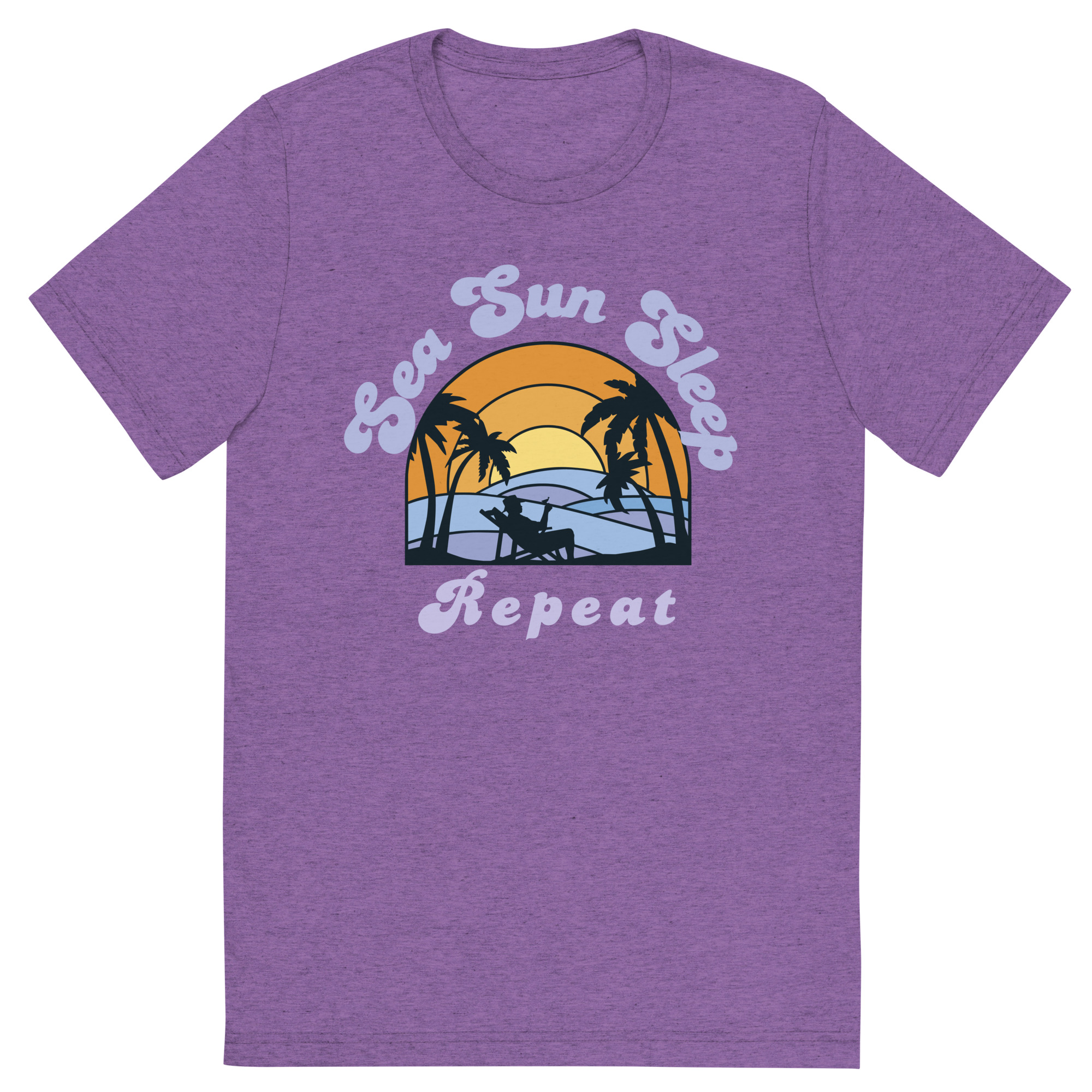 Unisex “Sea Sun Sleep repeat.PurpleTriblend” T-shirt