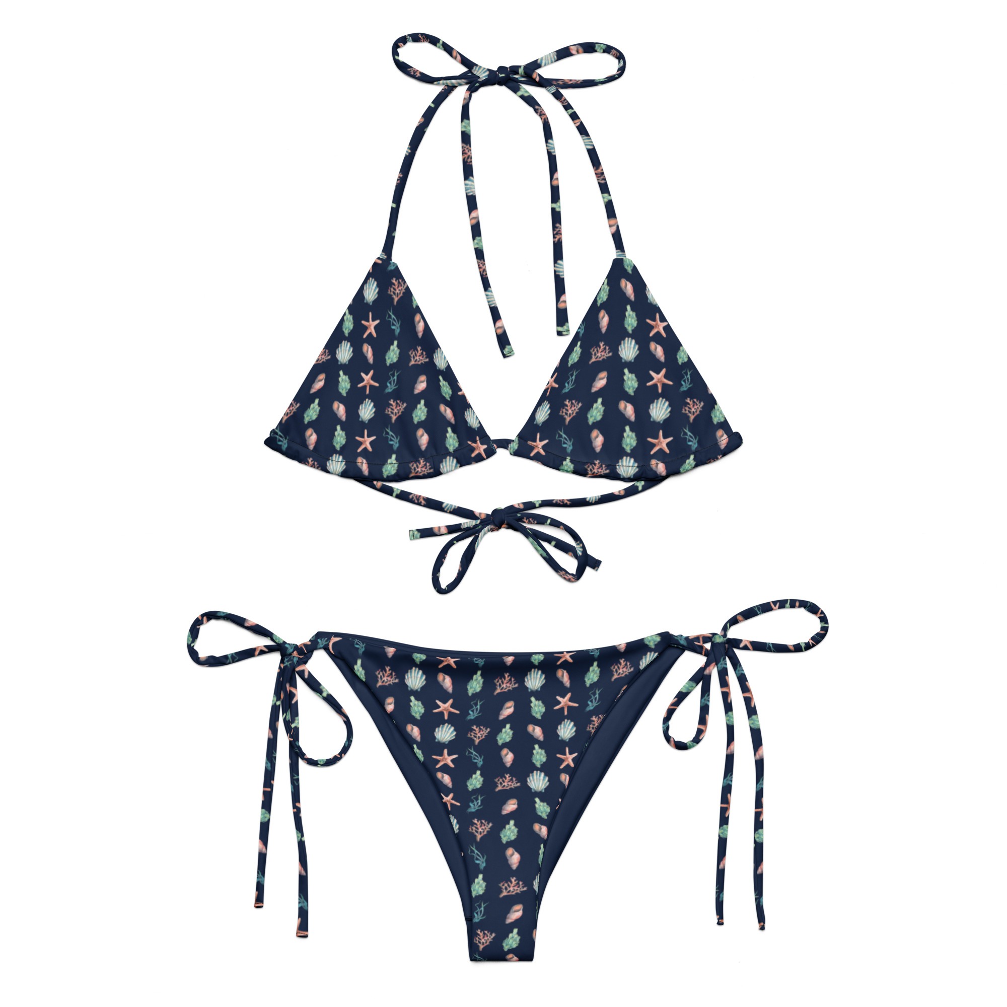• To make your All-Over Print Recycled String Bikini last longer, thoroughly rinse it off after each use and get rid of any chlorine/salt residue.
