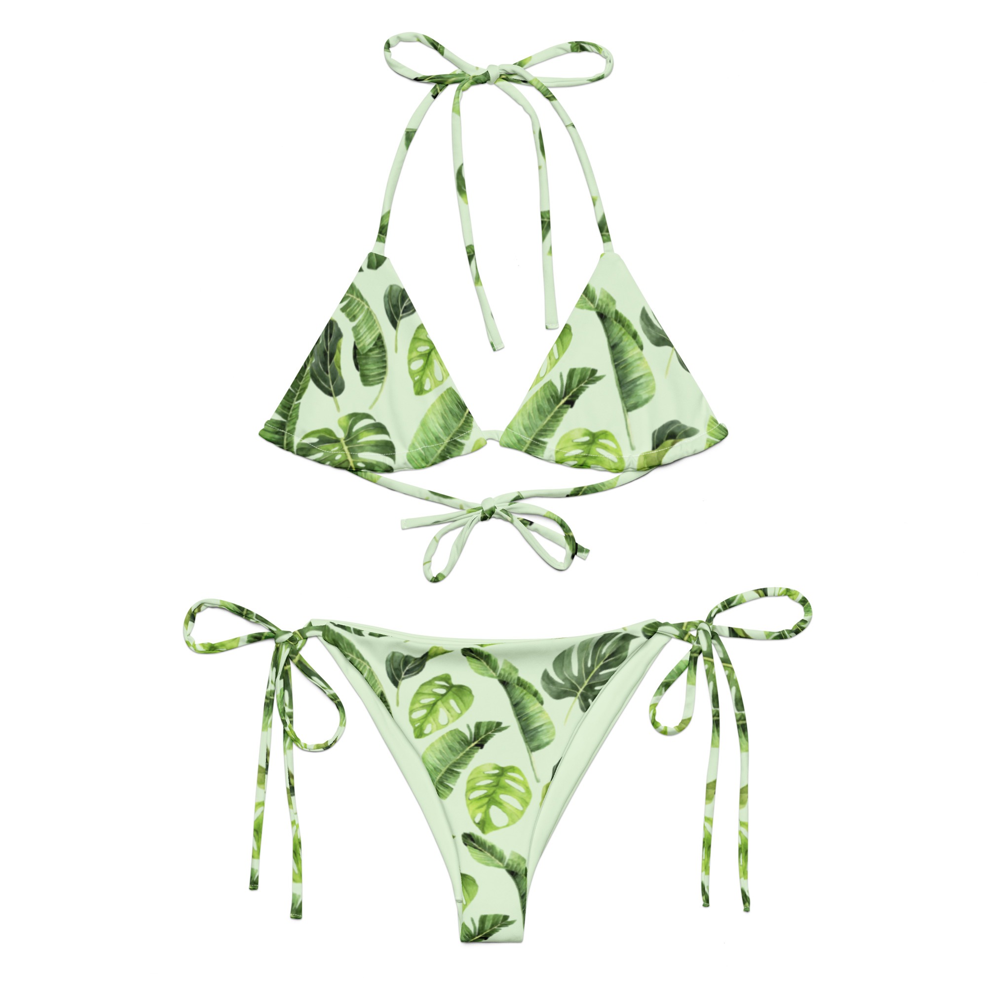 • To make your All-Over Print Recycled String Bikini last longer, thoroughly rinse it off after each use and get rid of any chlorine/salt residue.