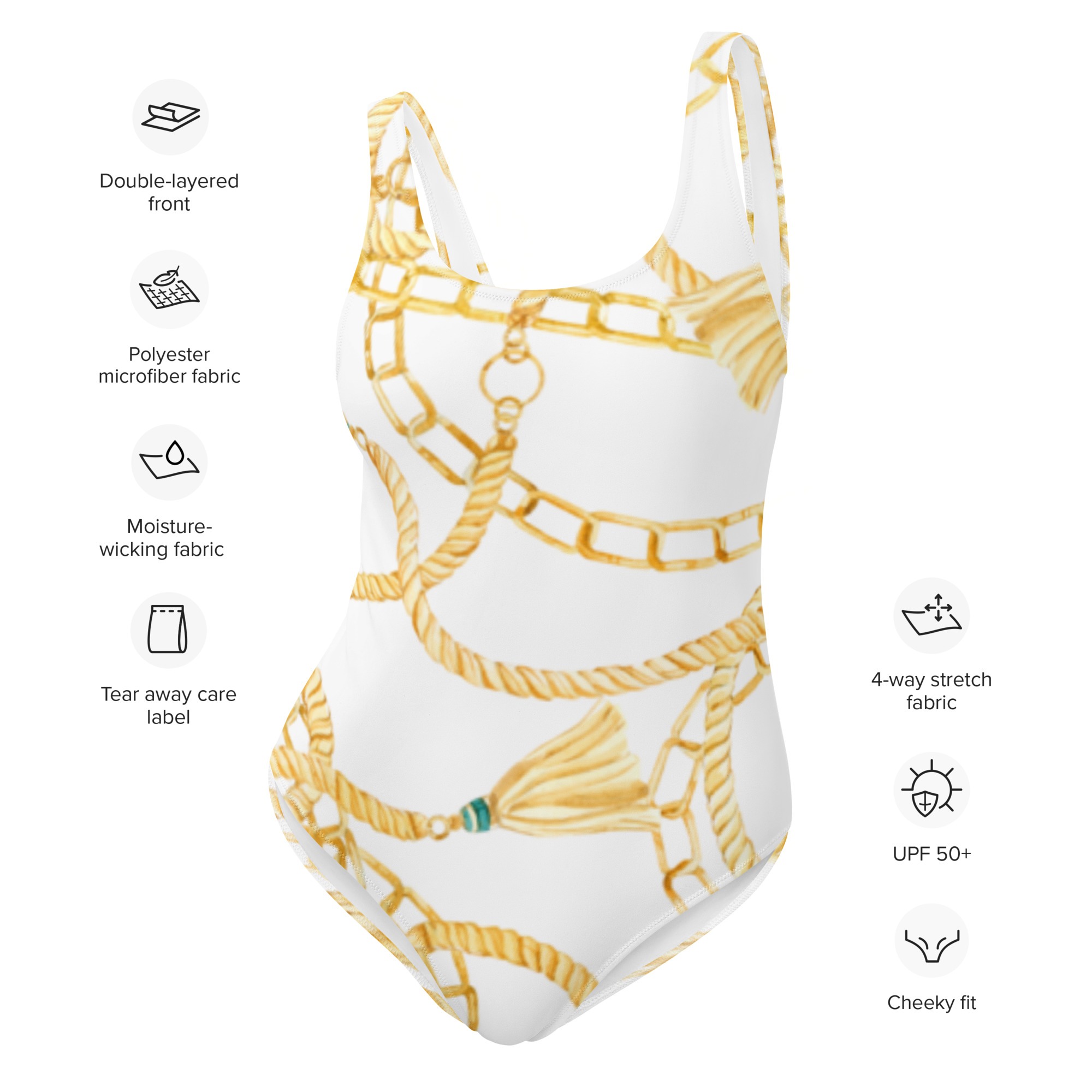 This one-piece swimsuit for all figures will bring out your best features. Enjoy the smooth fabric and the flattering design, and show it off by the sea or pool!