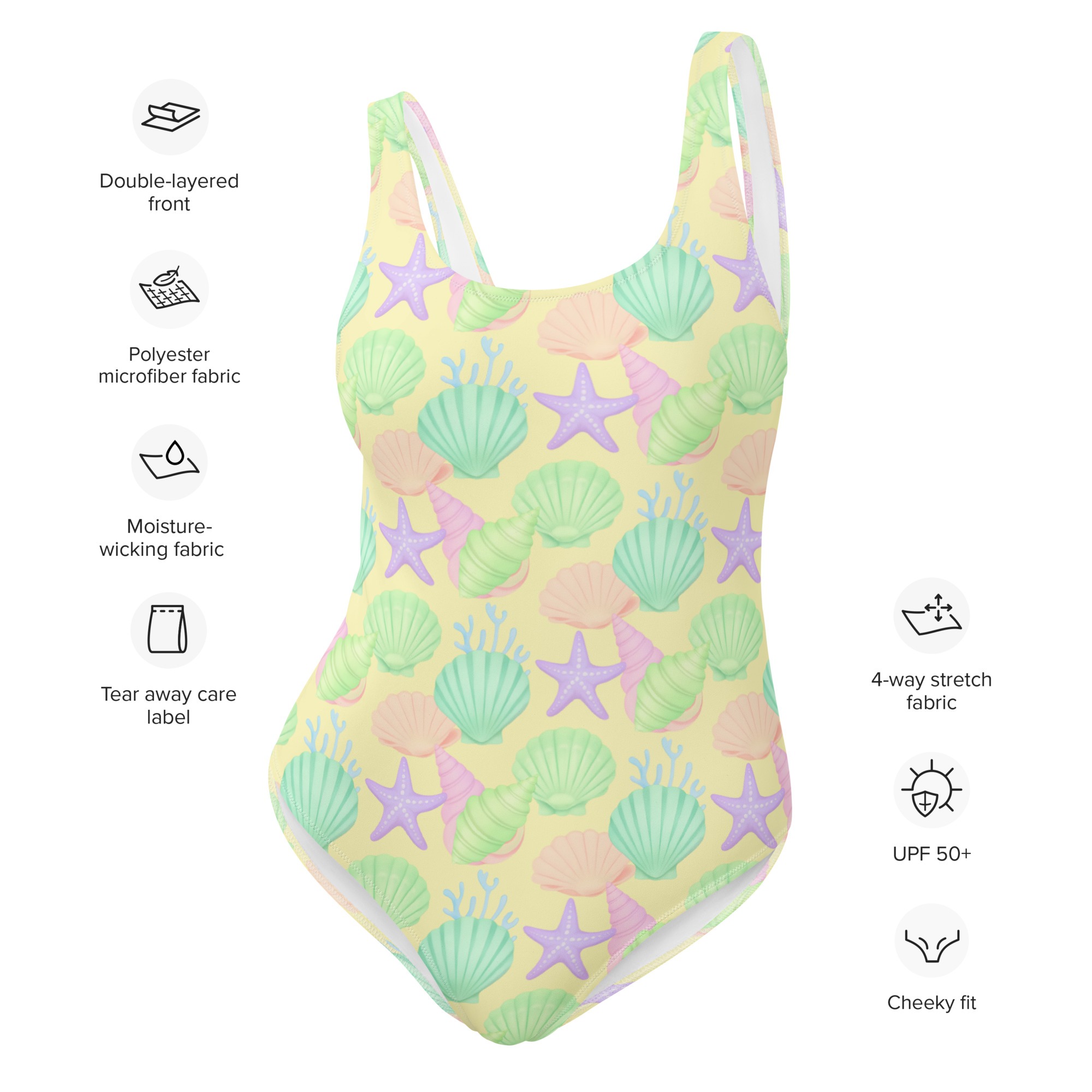 This one-piece swimsuit for all figures will bring out your best features. Enjoy the smooth fabric and the flattering design, and show it off by the sea or pool!