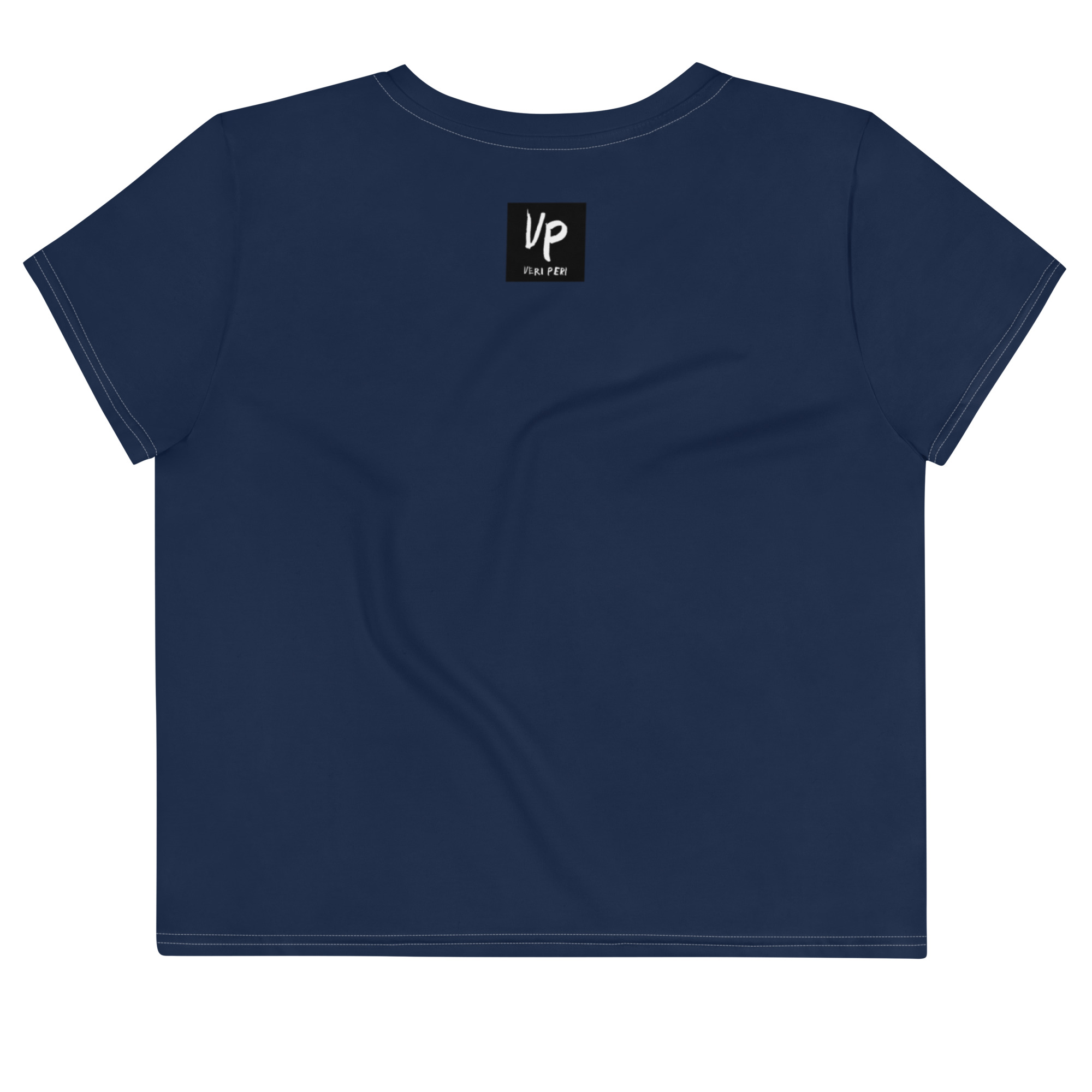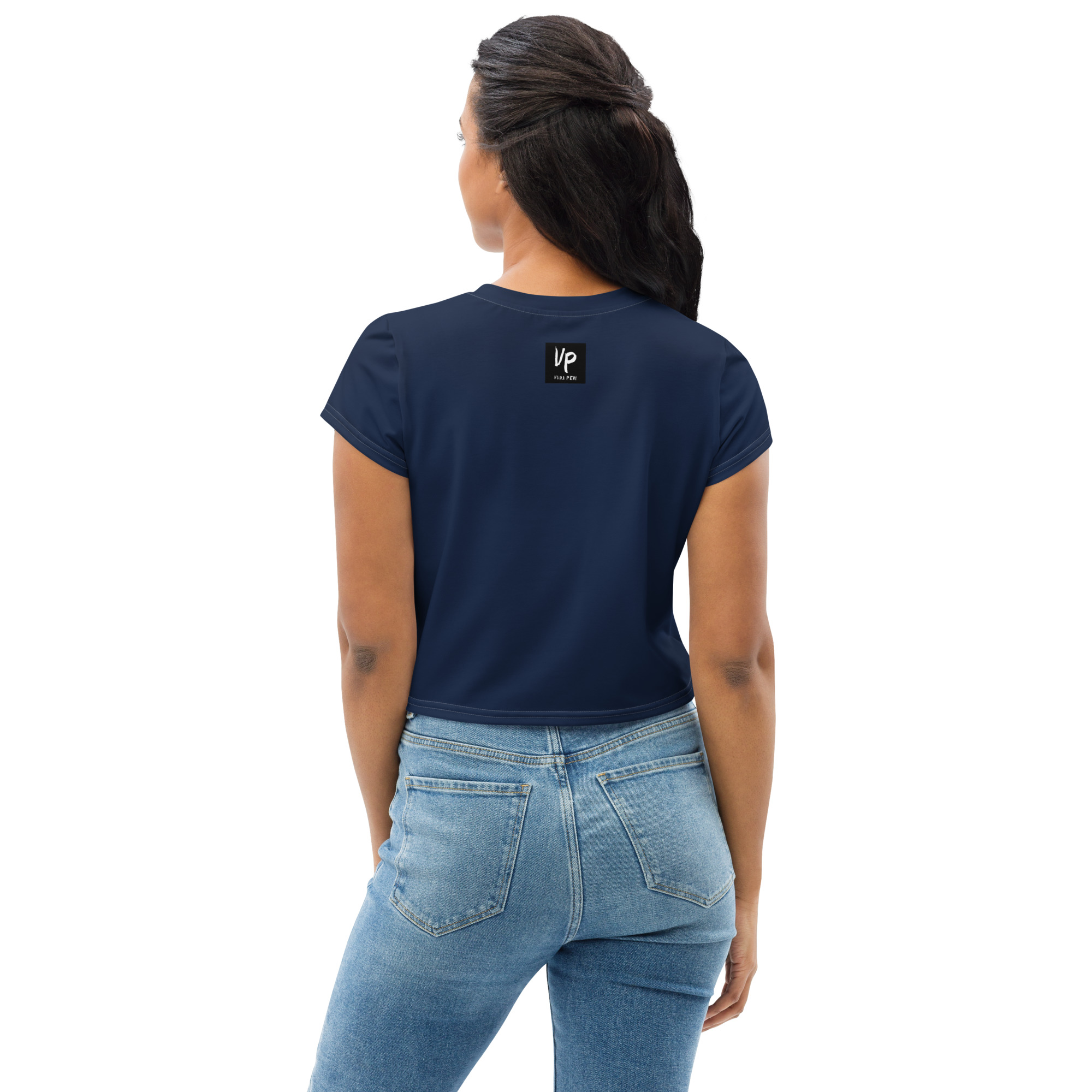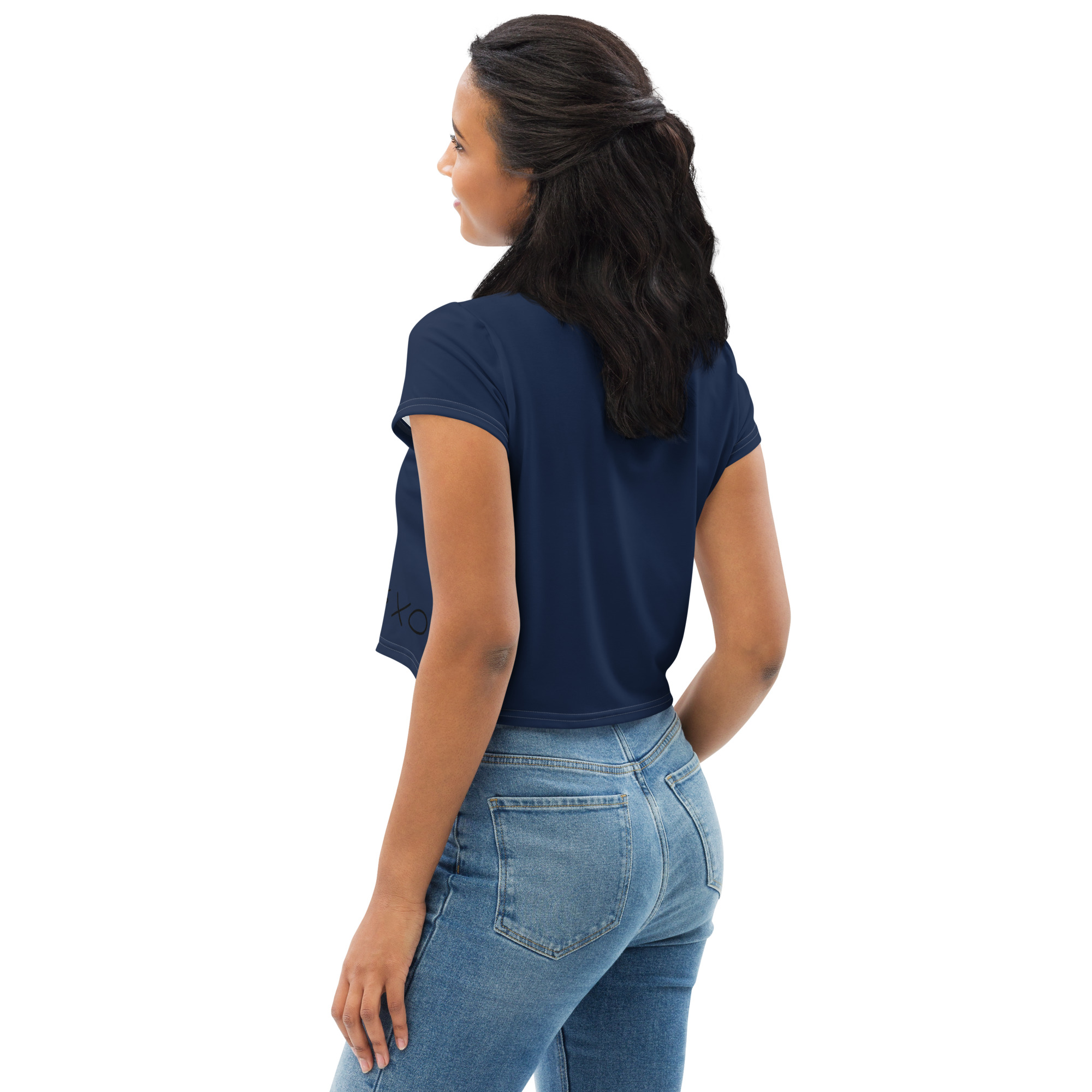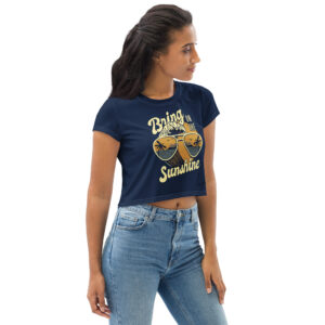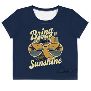 Woman’s “Bring on the sunshine.navy” All-Over Print Crop Tee