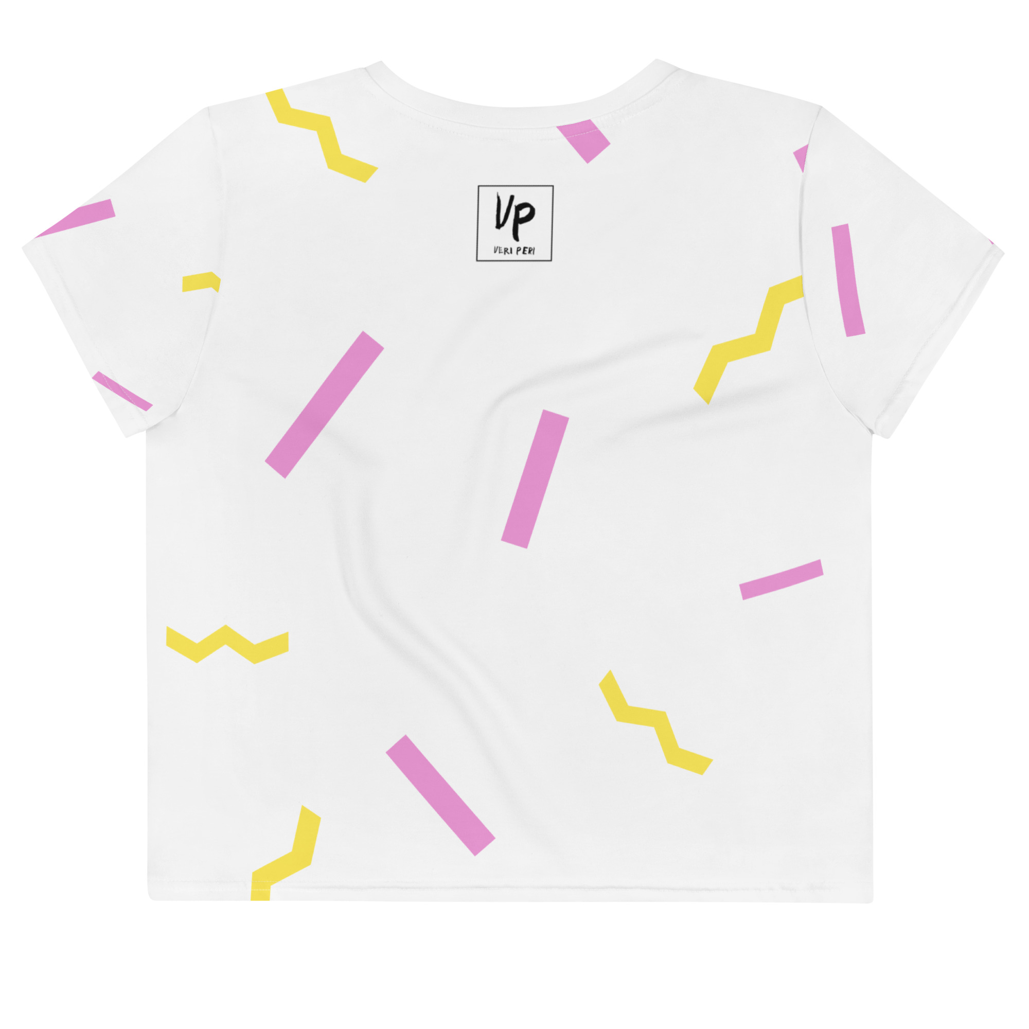 Looking for you next wardrobe favorite? Well, look no further because this crop tee is printed and sewn to fit you just right. To top that off, the original all-over design is definitely worth showing off, so don’t hesitate to own one of these tees – they’re meant to be adored.