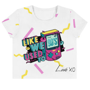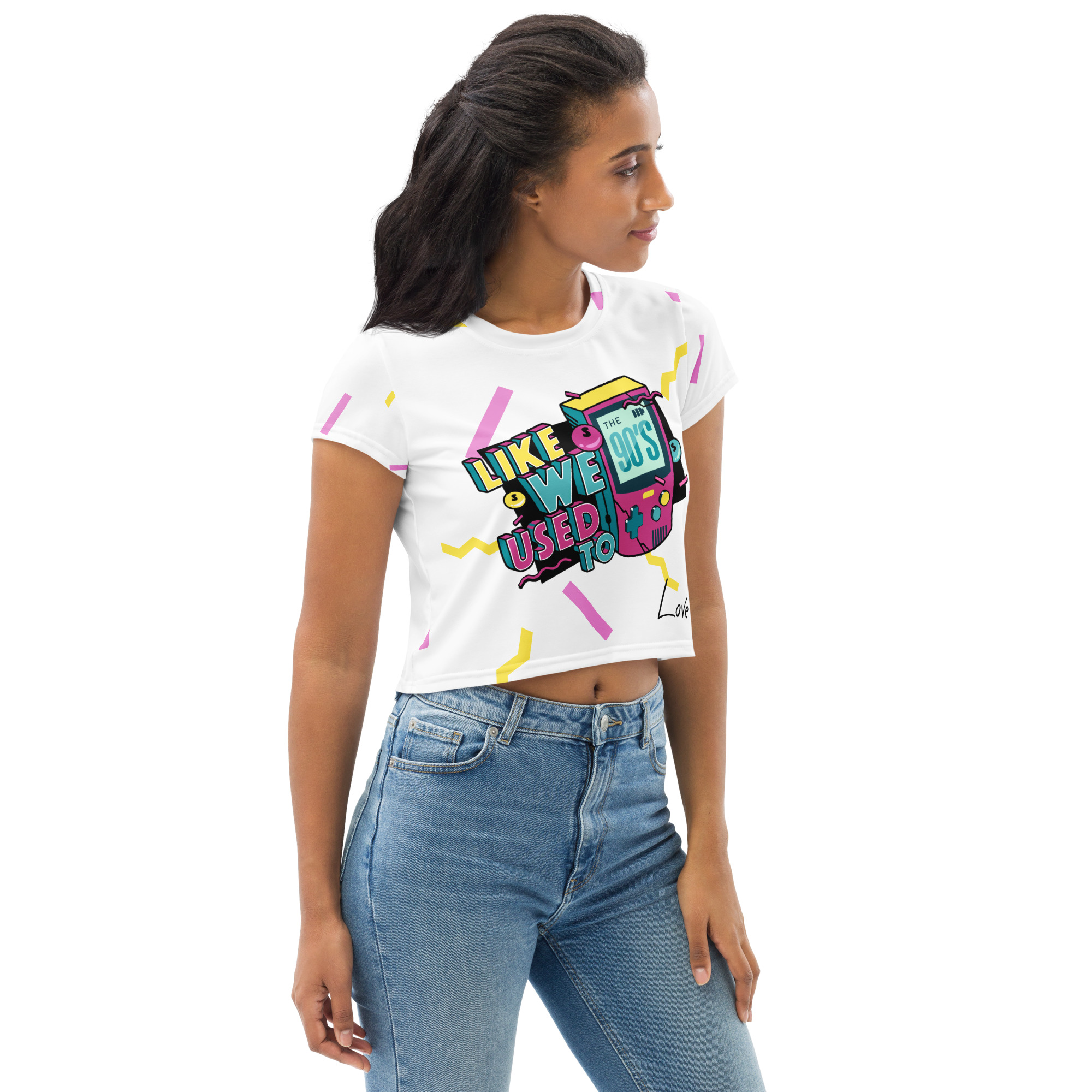 Woman’s “Like we used to 90.white” All-Over Print Crop Tee