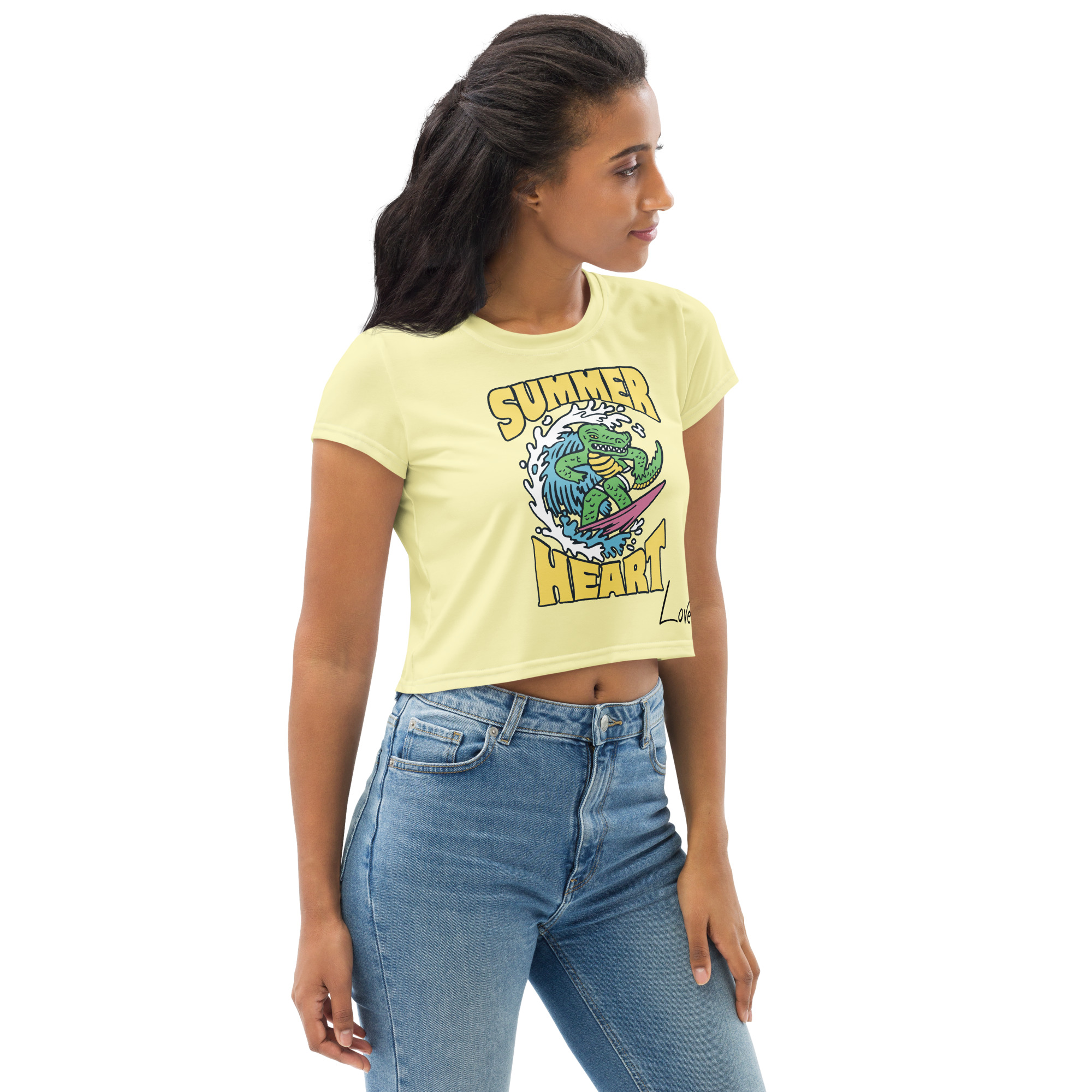 Woman’s “Summer heart.yellow” All-Over Print Crop Tee
